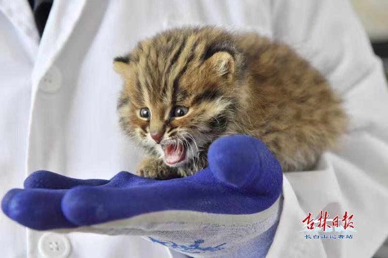 4时许,这只野猫幼崽被邀请到野生动物救护站。经兽医崔秀成检查后认定,它为猫科中的豹猫,系国家二级保护动物,这只豹猫为雄性,目前还未满月,但精神状态良好。