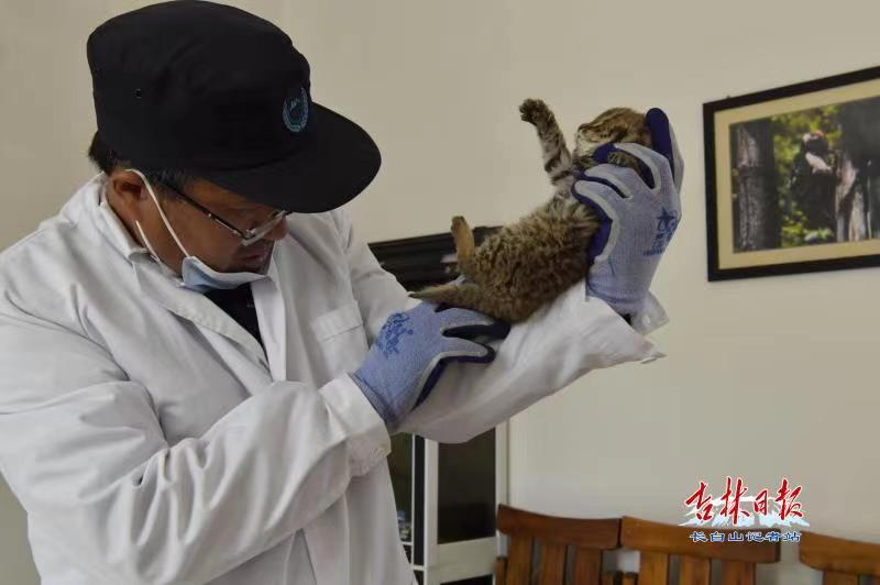 朴正吉告诉记者:救护站救助的这种豹猫与狸猫是近亲,学名叫豹猫,也叫狸猫,当地人叫它山狸子。豹猫在长白山上分布比较广,因为豹猫喜欢吃一些家禽和老鼠,所以豹猫的出现和人的居住环境有关系,不论海拔多高只要有人生存豹猫就会出现。因为豹猫的数量变动受人的影响比较大,所以一直被列为国家二级保护动物。目前长白山猫科动物有四种,包括猞猁、豹猫、虎和豹。豹猫本身的繁殖力不是很强,每胎能产二到三只,并且成活率也不高,豹猫数量的变化在一定程度上会影响整个食物链,如果人类不加以保护,豹猫繁殖的数量就会受到影响。国家将豹猫列为二级保护动物,说明豹猫目前处在受威胁的状态,我们要保护野生动物,守护好我们的绿水青山。