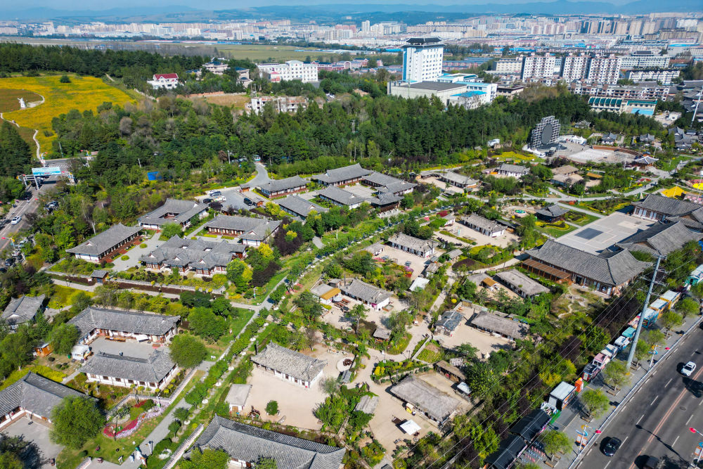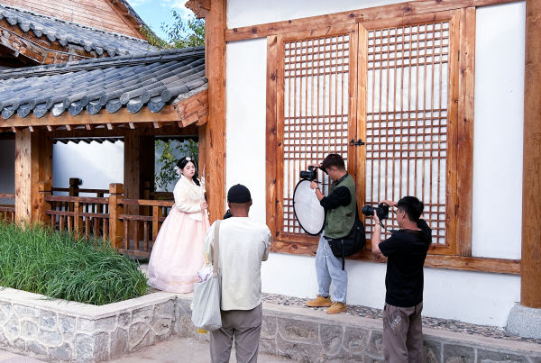 走进中国朝鲜族民俗园,随处可见身着朝鲜族服饰的姑娘、小伙儿,他们佩戴精美饰物,化着精致妆容,穿梭在青瓦白墙、古色古香的院落当中拍照,仿佛一幅民俗风情浓郁的沉浸式“游”画跃然眼前。