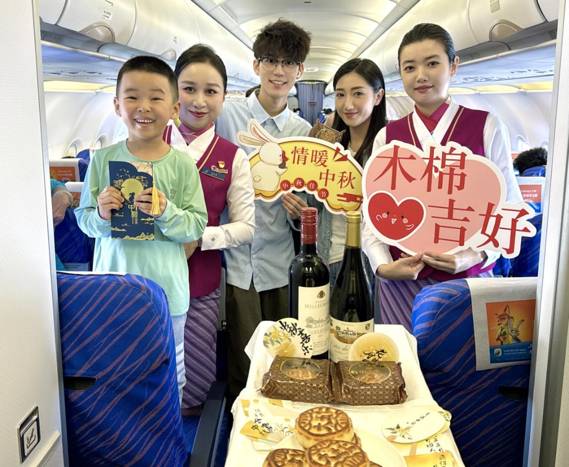 中秋佳节期间,南航吉林分公司客舱部在成都、昆明、广州等多条精品航线上精心打造了木棉吉好-“情暖中秋·云端团圆”主题航班系列活动,让中秋的温情在万米高空绽放。