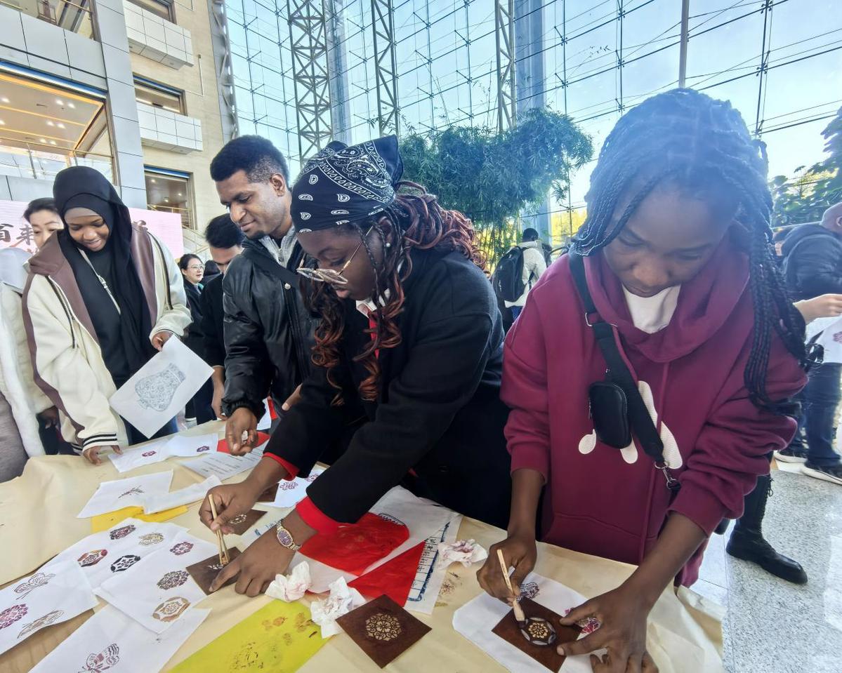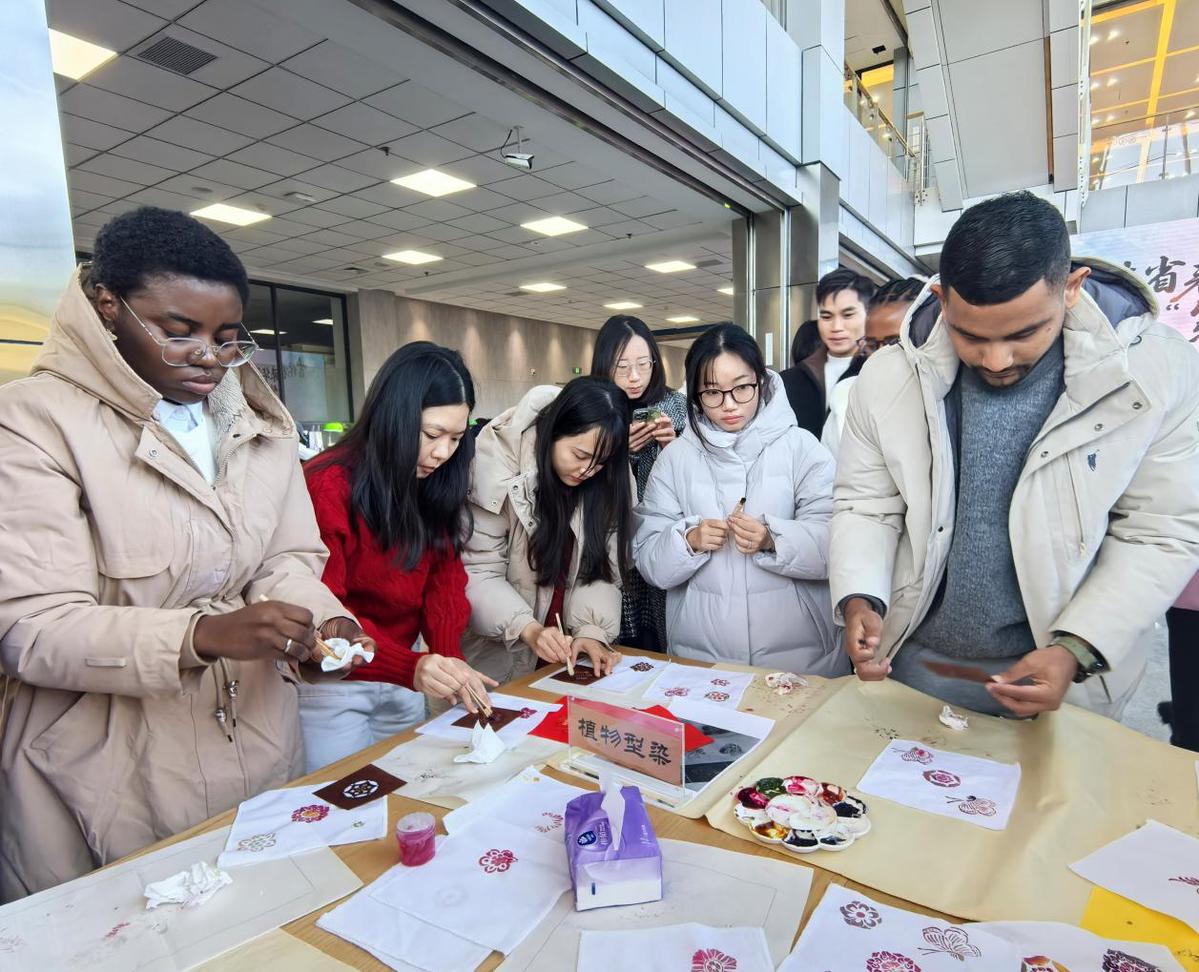 专题授课后,留学生们参与了中华传统典籍文化实践体验活动。在沉浸式环节中,大家近距离接触古籍修复,在工作人员指导下尝试碑帖传拓、型染制作等互动项目,亲身感受中华优秀传统文化的文字之美与思想之蕴。“零距离” 体验打破了文化认知隔阂,进一步激发了留学生对中华优秀传统文化的兴趣与认同。