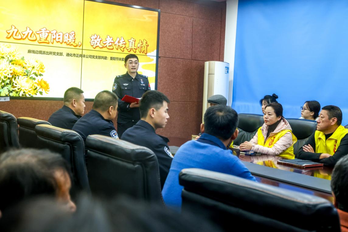 10月28日上午,通化边境管理支队麻线边境派出所院内人头攒动,通化市正尚丰公司职工带着米面油等慰问品,为集安市麻线乡老人们送去节日的祝福与陪伴。