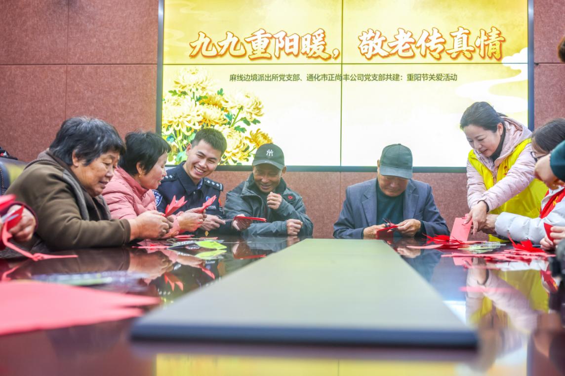 “剪纸艺术是咱们老祖宗传下来的宝贝……”麻线边境派出所民警崔广财一边向老人们发放红纸,一边细致介绍非遗文化。佟佳江满族剪纸项目代表性传承人丛永莉以非遗剪纸为纽带,迅速引来老人们的围观。在老师与民警一对一的帮扶指导下,原本普通的红纸渐渐变成寓意美好的作品,活动室里不时响起阵阵欢笑与赞叹。