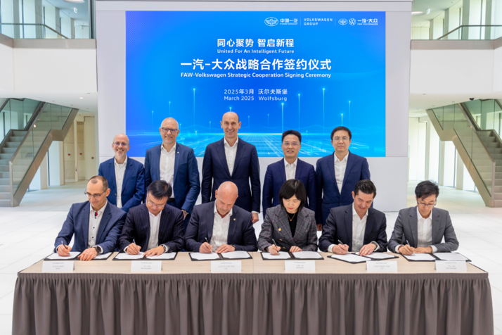 战略协同聚势赋能,智电转型提速增效。中国一汽与大众汽车集团在德深化战略合作,敲定11款为中国市场量身打造的全新车型,其中10款为新能源车型,持续丰富产品矩阵。一汽 - 大众深度参与本土化研发,首款捷达品牌纯电车型搭载自主SOA电子电气架构,以行业领先的智能化解决方案,践行“油电混共进全智”战略。