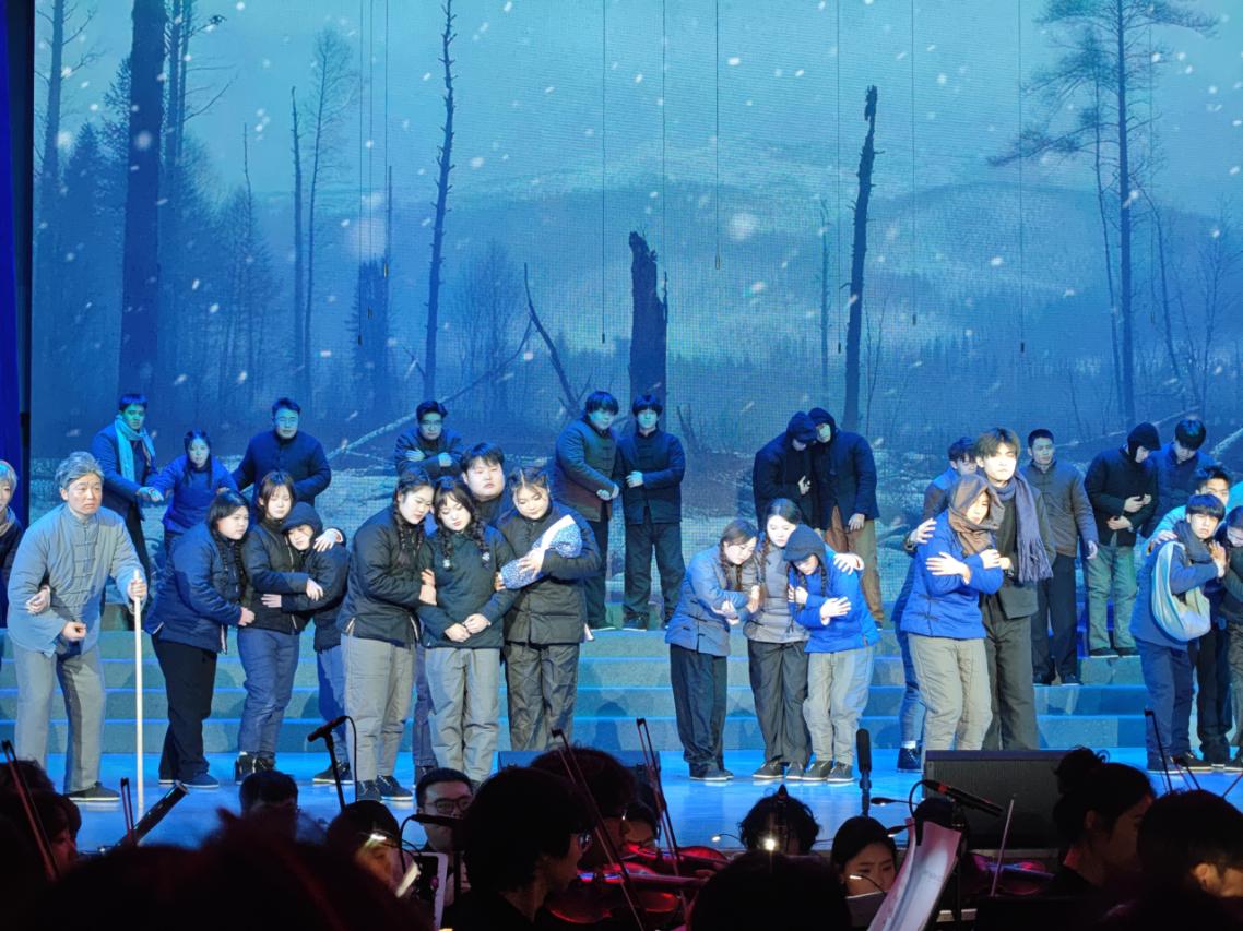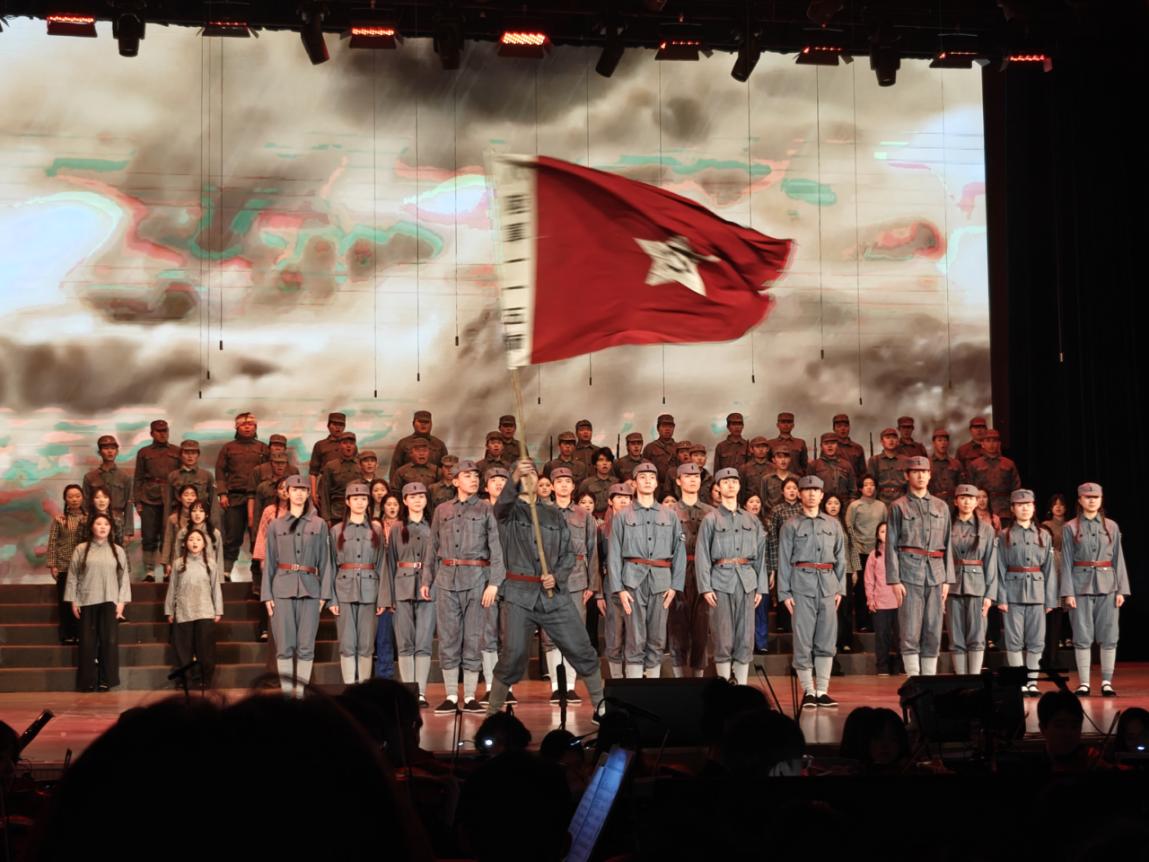 本次音乐会创新采用 “情景合唱剧” 模式,融合多元艺术形式,以五大篇章串联起抗战岁月与奋进征程。《松花江上》《黄河大合唱》等经典曲目轮番上演,既再现了峥嵘历史,又抒发了复兴信念,兼具思想性与艺术性,充分展现学校文化育人氛围,为师生凝聚起奋进新时代的精神动力。