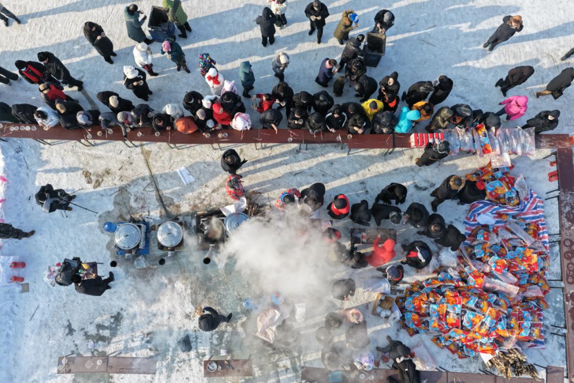 哈尔淖水库的冬捕现场同样热闹非凡。这里延续着辽金时期的千年渔猎技艺,渔民们在零下20摄氏度的冰面上凿冰打眼、穿杆走钩,1800米长网悄然铺展。随着“鱼把头”嘹亮号子,巨网缓缓拉出,鲜鱼欢腾跳跃、银鳞闪烁,1月15日单网23万斤的“红网”丰收,印证了当地“捕大放小、科学养护”的生态理念。如今,冬捕已升级为文旅IP,让游客沉浸式感受古老文化与丰收喜悦。
