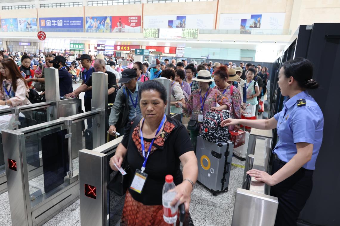 为保障开行,吉林站组织骨干加班完成线路规划、票务办理等工作,对接旅行社安排旅客集散,开设专列安检通道、候车专区及检票专口。干部职工协同引导客流,主动帮搬大件行李,保障安全登程。