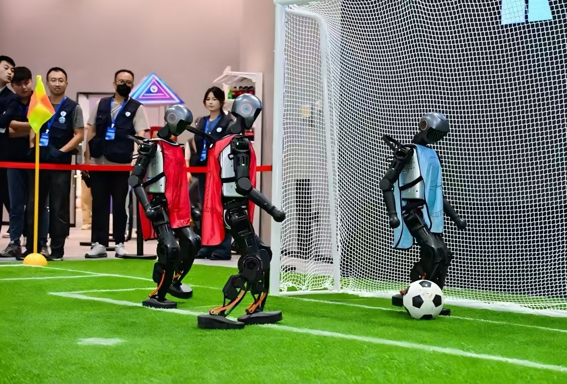 机器人竞技赛中,机器人足球赛与拳击赛吸引全场目光。赛事不仅带来高水准科技竞技观赏体验,还开放互动通道,观众可亲身体验与机器人同场竞技,在趣味中深化对仿生机器人技术的认知,激发对 “人工智能 + 机器人”领域的探索兴趣。