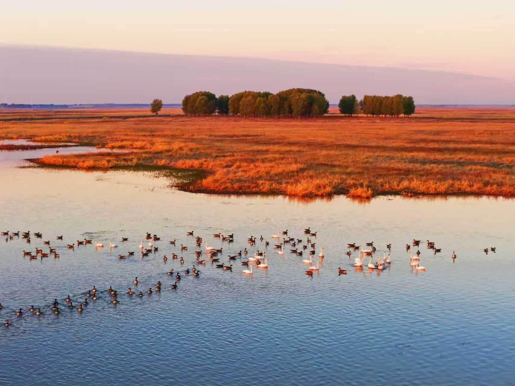 位于白城市镇赉县域内的吉林莫莫格国家级自然保护区,是吉林省最大的湿地类型保留地。作为东亚——澳大利西亚候鸟迁徙通道上的“黄金驿站”,这里每年吸引超过十万只迁徙候鸟在此停歇补给,10月以来,莫莫格陆续进入今年秋季迁徙候鸟的高峰期。