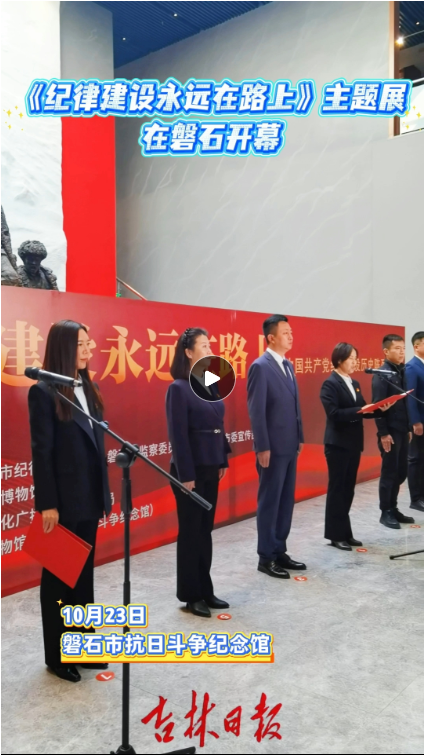 10月23日,由磐石市纪委监委、磐石市委宣传部、武汉革命博物馆、磐石市文广旅局联合主办的《纪律建设永远在路上——中国共产党纪律建设历史陈列展》在磐石市博物馆(磐石市抗日斗争纪念馆)正式开幕。