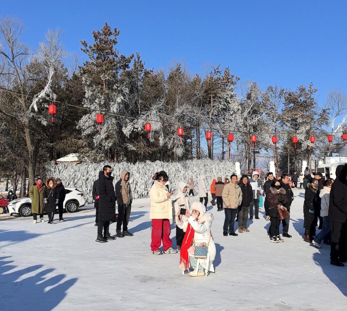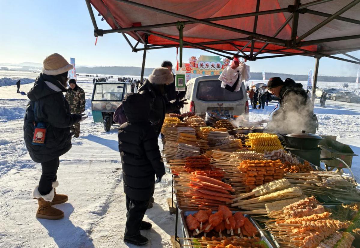 围绕冬捕核心,活动设置多项沉浸式体验板块。关东大集上农特产品琳琅满目,免费品鱼区香气扑鼻,铁锅炖鱼等本土美食让游客大快朵颐;雪滑梯、冰陀螺、冰雪迷宫等娱乐项目趣味十足,老少游客尽情嬉戏,欢声笑语回荡在冰雪天地间,全方位展现了辉南冬日乡村的独特魅力。